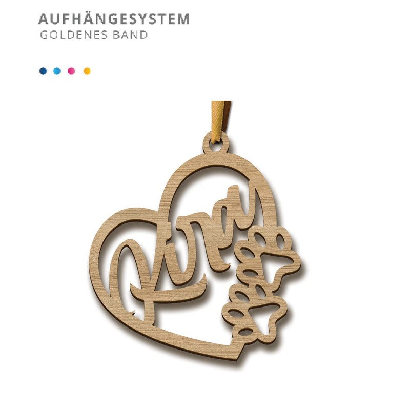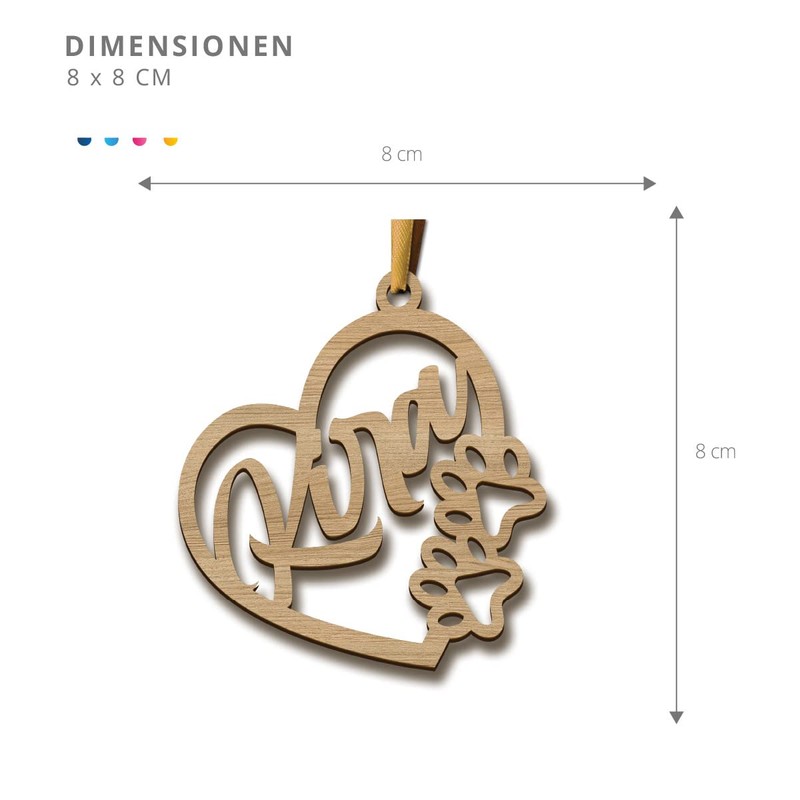 Personalised Wooden Christmas Bauble - Laser Cut Christmas Ornaments with Personalised Name (Model: Heart & Paws, Chêne/Oak)