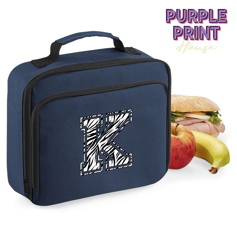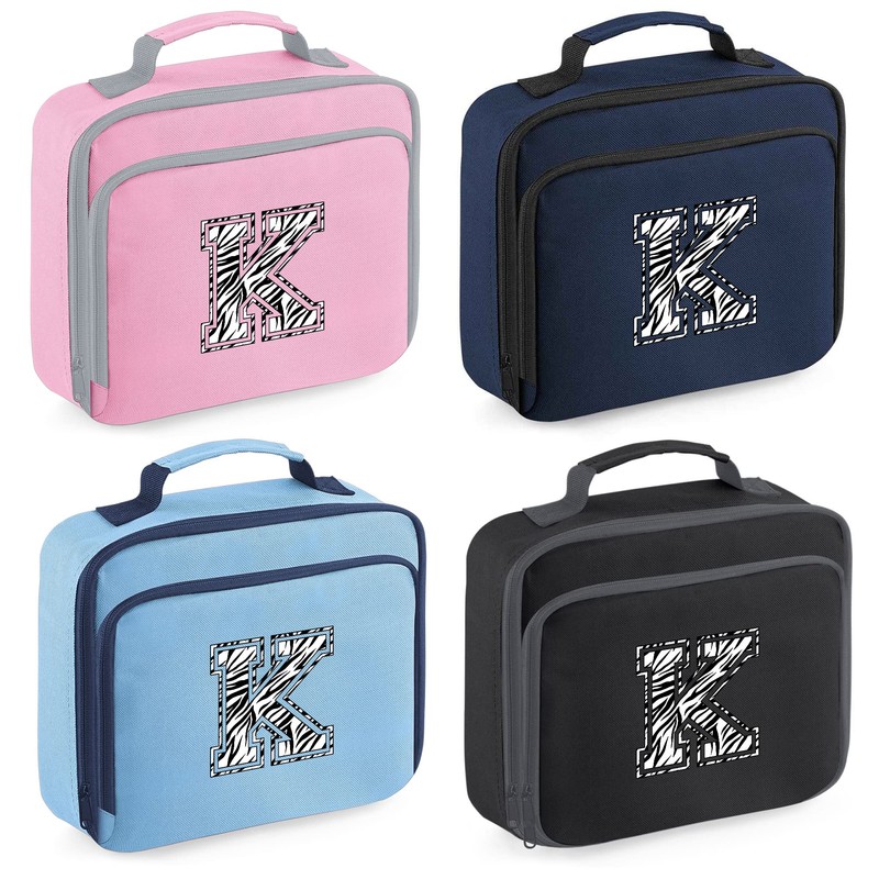 - Zebra Print Initial Lunch Bag - Personalised Back to School Lunch Box Gifts for School Girl - Custom Nursery Gifts for Daughter, Kids