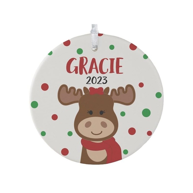Personalization Universe Christmas Moose Personalized Ornament- 3.75" Matte - 1 Sided