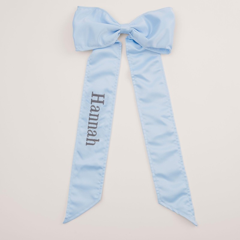 - Embroidered with name in choice of font and thread color. Thread color shown in Grey and font is Times.