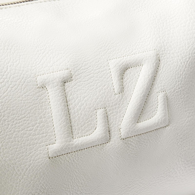 Personalization Universe Trapunto Embroidered Vegan Leather Make Up Bag- White