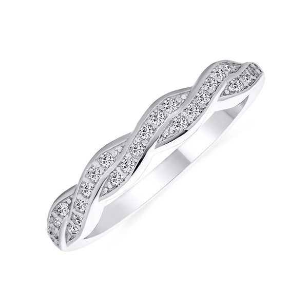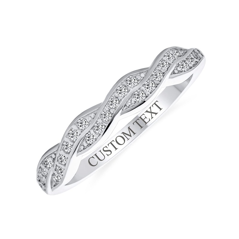 Personalize Intertwined Rope Twist Knot 1/2 Eternity Clear Pave Cubic Zirconia CZ Infinity Band Ring For Women Girlfriend .925 Sterling Silver Customizable