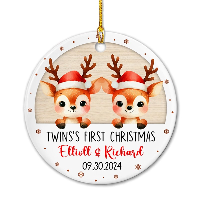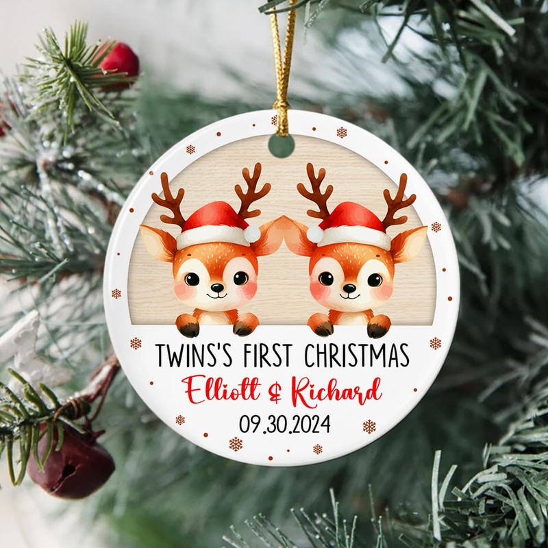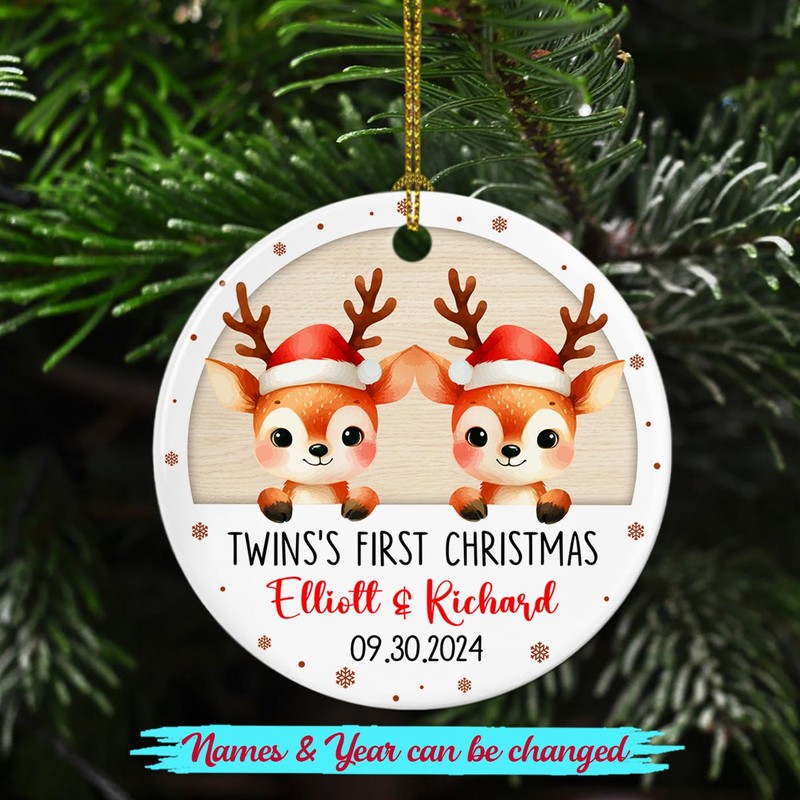 Personalized Baby Twins' Ceramic Ornament, Baby Deer Twins' First Christmas Ornament Gift for New Parents Twin Babies, Custom Names Baby Twins Xmas Ornament, Baby Twins 1st Christmas Ceramic Ornament