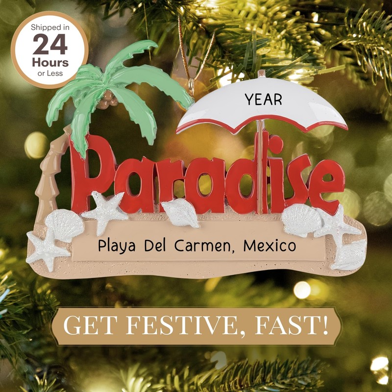 Personalized Beach Ornament 2024 β Fast & Free 24h Customization β Vacation Christmas Ornament for Tree β Custom Gift Wrapped Beach Paradise Keepsake for Honeymooners, Travelers, Holidaymakers
