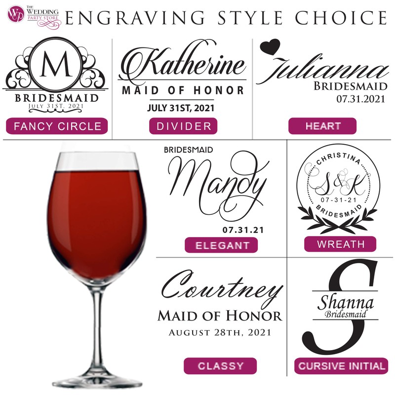 Personalized Bridesmaids Wedding Party Wine Glasses - Custom Etched and Engraved