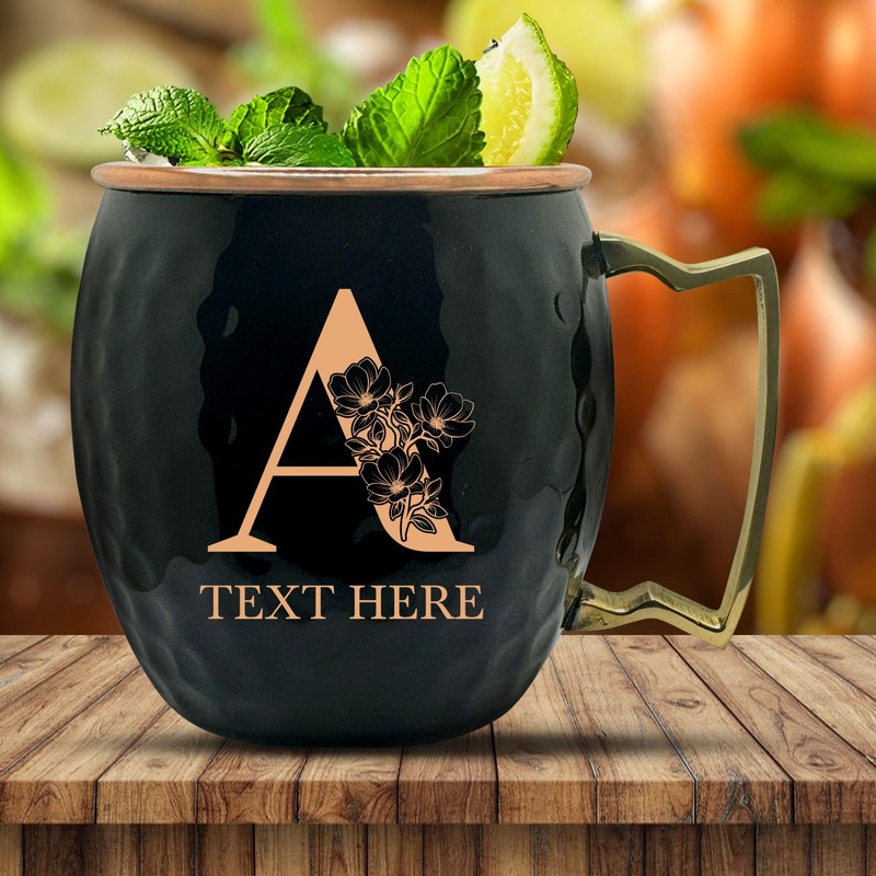 - PERSONALIZED: Add a special touch to your home bar with these custom engraved 100% copper with black painted hammered finish mugs, featuring In Bloom Monogram design in copper color engraving.