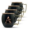 Personalized Copper Moscow Mule with Hammered Painted Finish - Engraved Bar Style 100% Copper Cup with Custom In Bloom Monogram Engraving, Brass Handle | 18 oz, Black | Set of 4