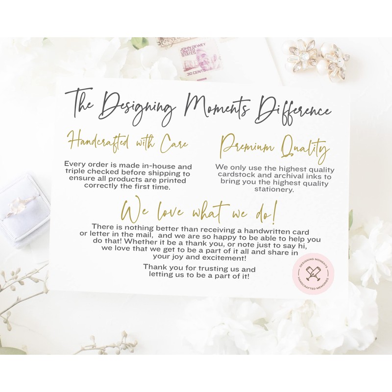 - Personalize Your Cards — Customize and choose your quantity and personalize with your text and your color choice - options can be viewed in the color charts. Your text will be printed in font shown in the listing photos.