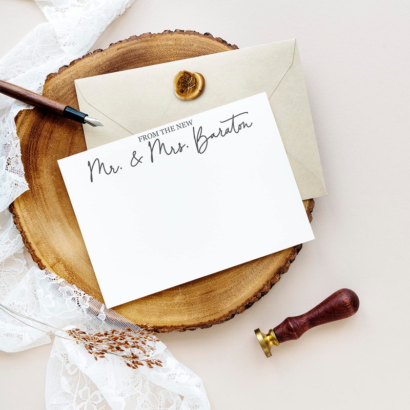 Personalized Couples Stationery for Newlyweds, Mr and Mrs Note Cards, Flat Thank You Cards from Married Couple, Choose Your Colors and Envelopes 22-152