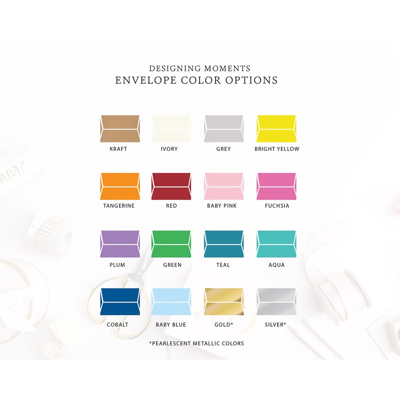 - Our Quality — Cards are printed on premium 110lb smooth, white cardstock using archival inks, giving it a crisp and vivid look. Envelopes are 70lb and come with a square flap closure.