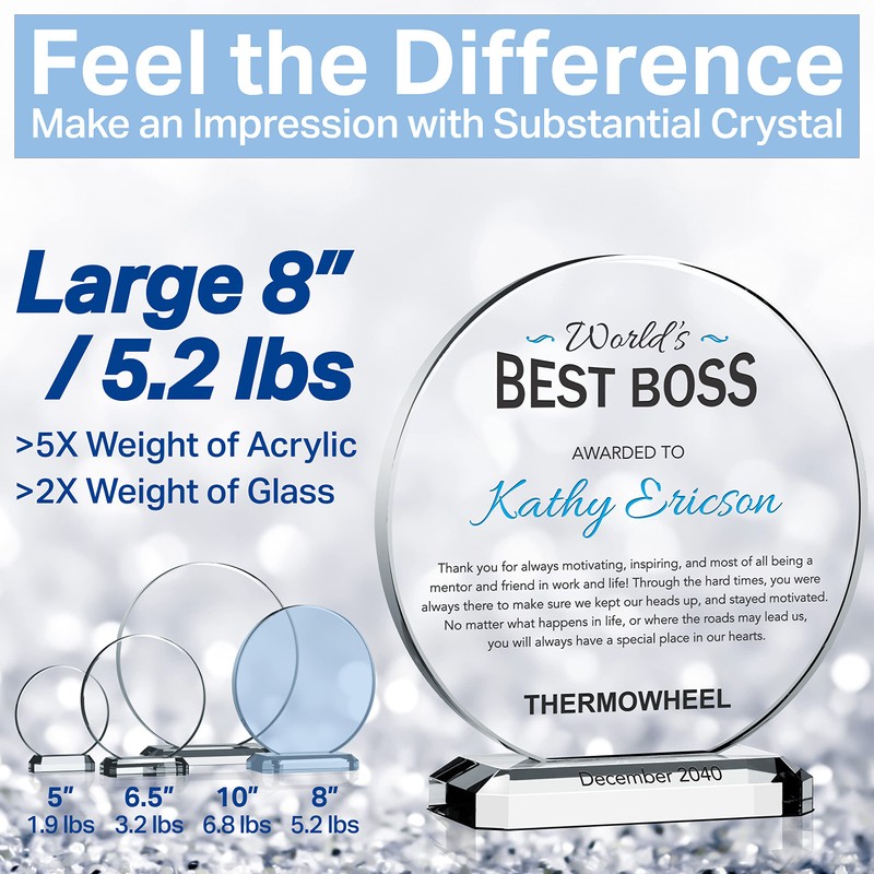 - Excellent Craftsmanship: Handmade optical crystal awards and plaques with clarity, brilliance, and substantial weight.