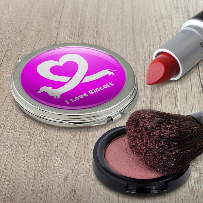 Personalized Custom 1 Line Dachshund Wiener Dog Love Heart Compact Travel Purse Handbag Makeup Mirror