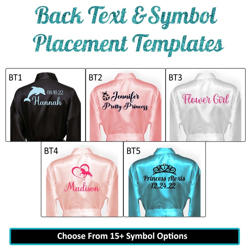 - With 32 colors to choose from; match any birthday theme or select her favorite color. You can chose to customize just the front; back or front and back of the robe.
