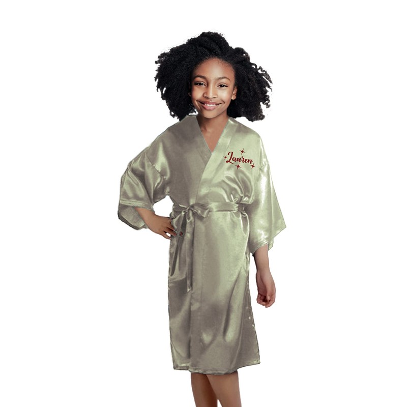 Personalized Girls Robes with Cute Symbol Design, Personalized Satin Robes, Add a Heart, Flower, Tiara & More | Toddler Robes | Child Robes, Girls, Sage, 8/10