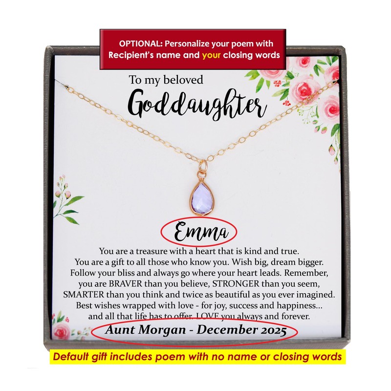 Personalized Goddaughter Necklace from Godmother or Godfather, Birthstone Nec...