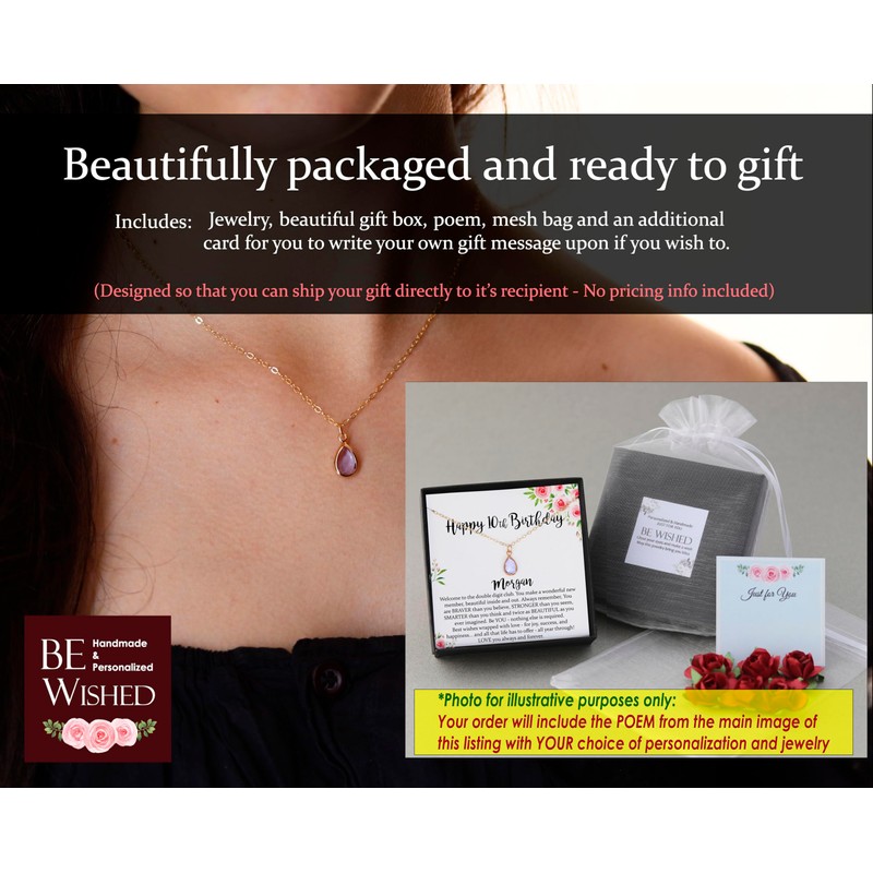 This birthstone necklace comes gift-wrapped with a heart felt message that gets it "spot on"- making it not only a perfect but meaningful present. It is durable and meticulously handcrafted from only the best materials. Because we believe that good gifts should not only be beautiful & thoughtful, but that they should last and be cherished.