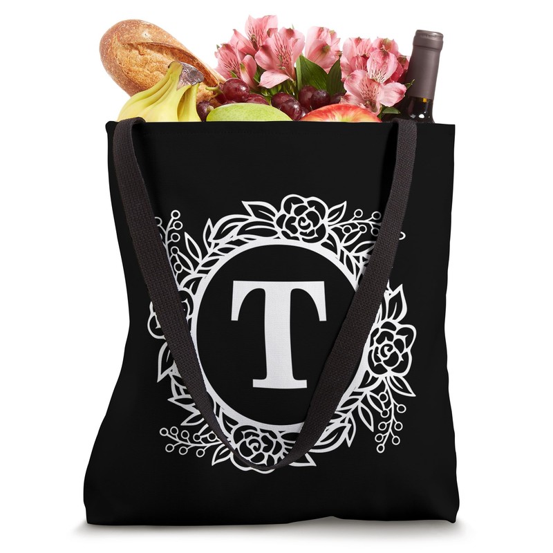 Personalized Monogram Letter T Initial Cute Floral Wreath Tote Bag