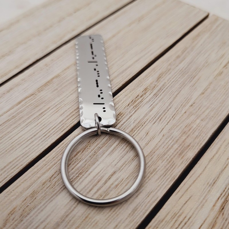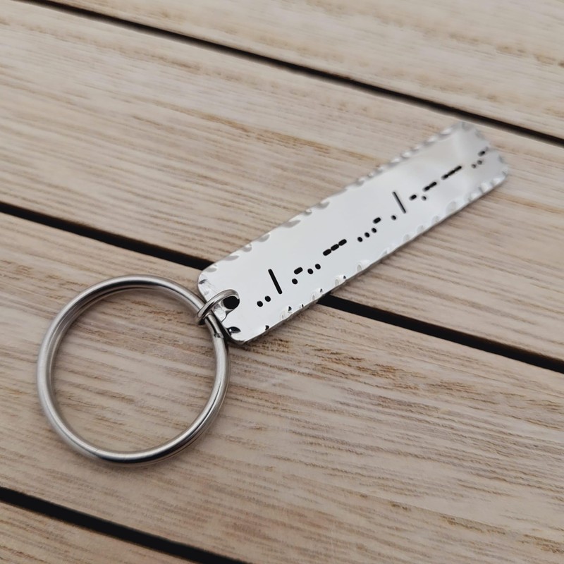 - The Morse Code Keychain with Hammered Edges is excellent choice as Personalized Gift for occasions as Valentine's Day, Music Festival, Birthdays, New Years, Anniversary, wedding, Graduation OR just a surprise gift for a Best Friend.