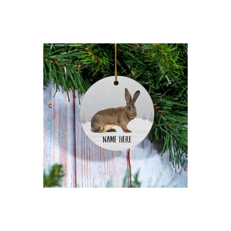 Personalized Name Flemish Giant Rabbit Christmas Tree Ornaments Circle Ceramic Decorations Gifts for Pet Owner
