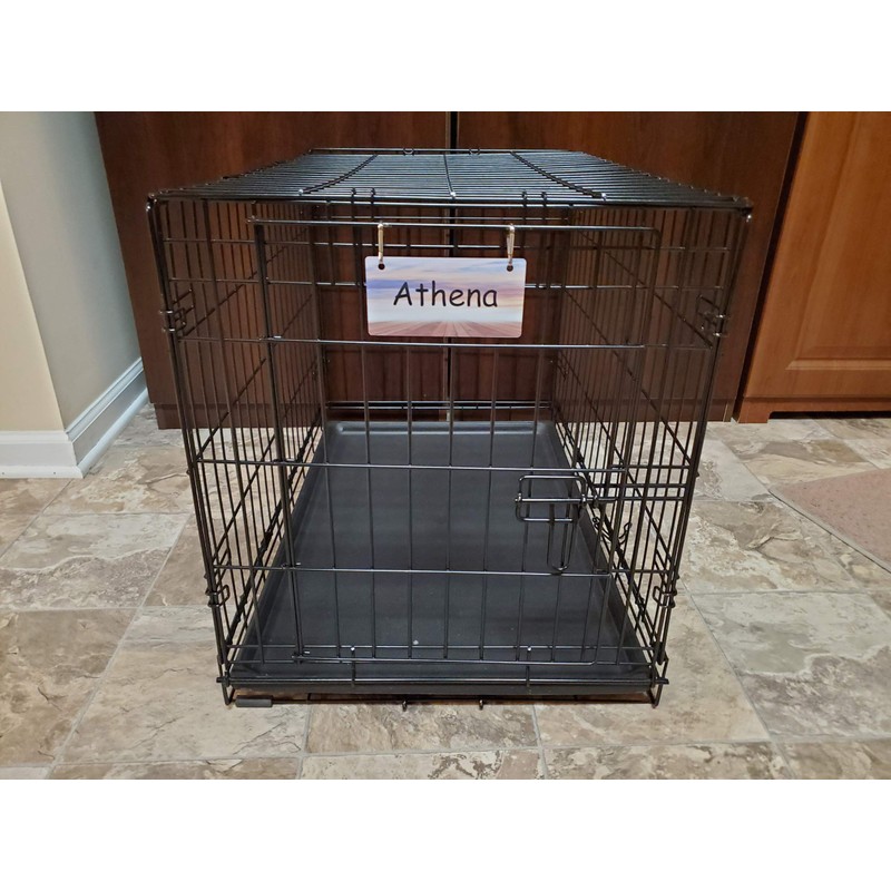 Personalized Pet Crate Tags 5x2½ inches - Customize - Choice of 21 Unique Designs (Purple Sunset Design)