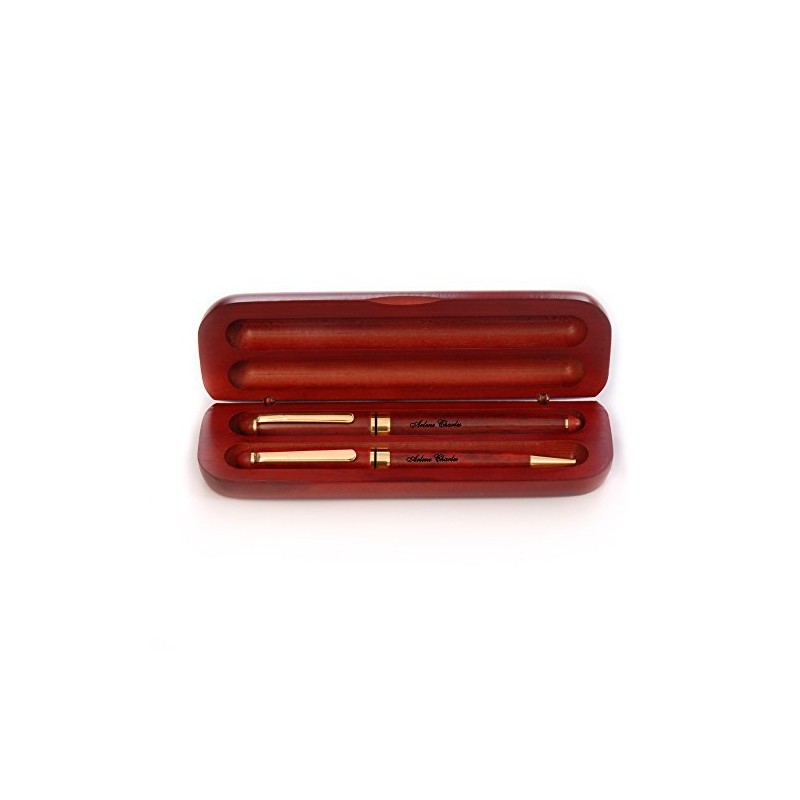 - Pen set includes: 1 case, 1 roller ball pen and 1 ballpoint pen. They are made of rosewood finished wood.