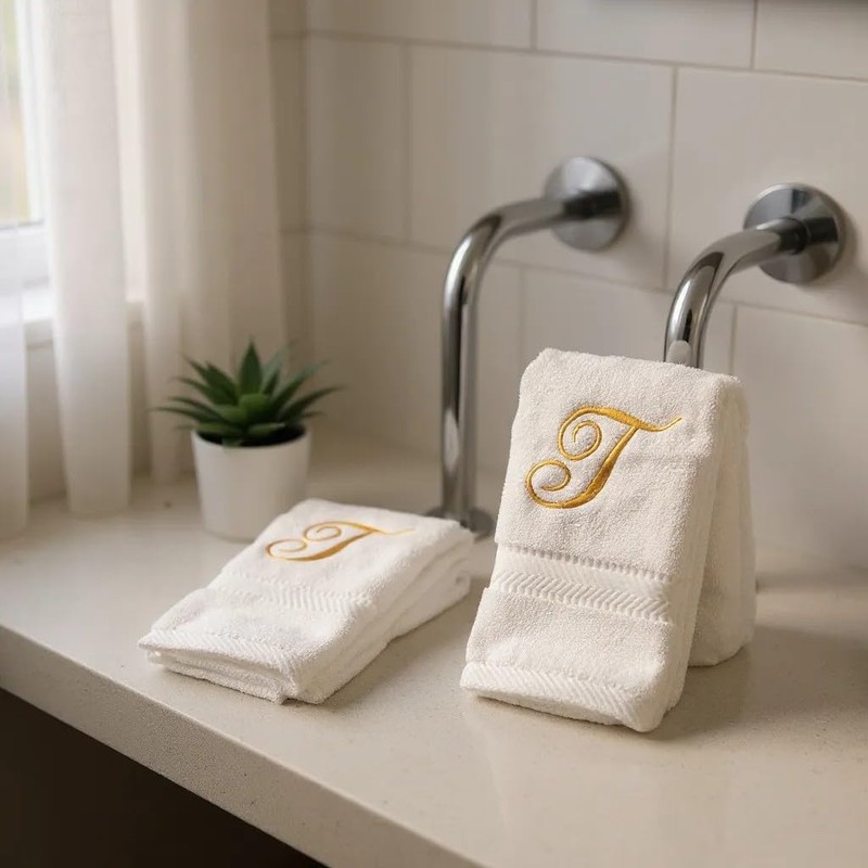 - ✔ Features: Personalized 100% terry cotton hand towels with embroidered initials (A-Z) in gold thread, using an elegant Fancy Script font. Set of 2 thick terry cotton towels (600+ GSM), measuring 16" x 30" for superior absorbency and softness.