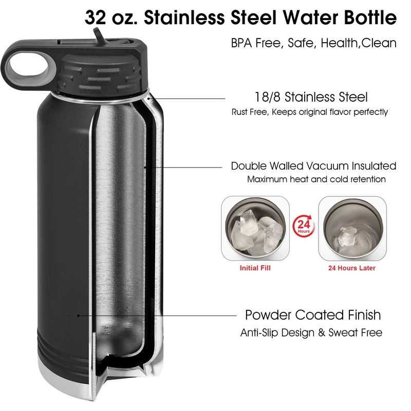 - Our customized water flask (32 oz) is a great gift to your family and friends for any holidays, weddings, birthdays, memorial days and so much more! It is suitable for traveling, fitness, camping, and work whether its at home or in the office.