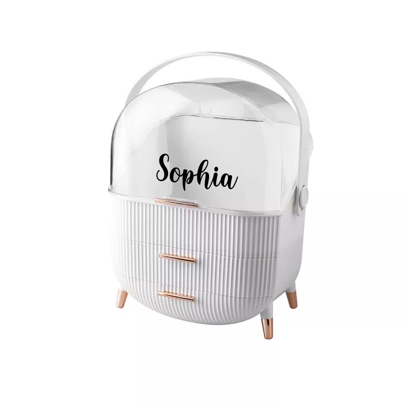 Personalized Waterproof Make Up Box Holder Dustproof Skincare Organizer, Bathroom Desktop Cosmetics Storage Box, Luxury Drawer Acrylic Makeup Organizer, Makeup Organizer With Lid (White With Name)