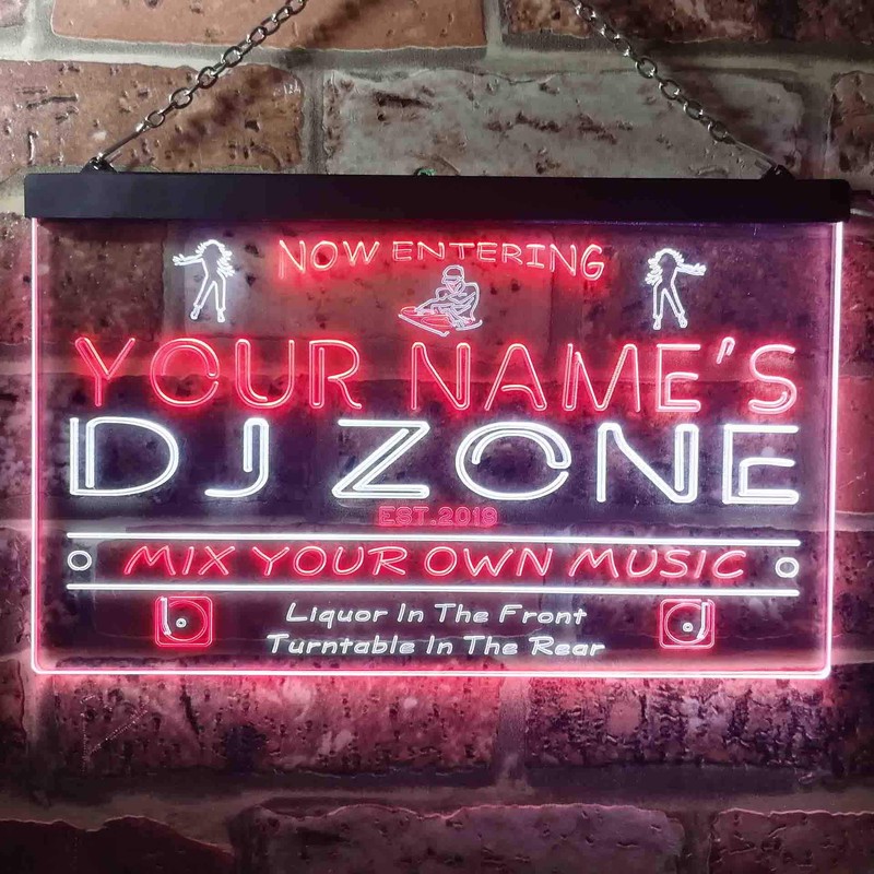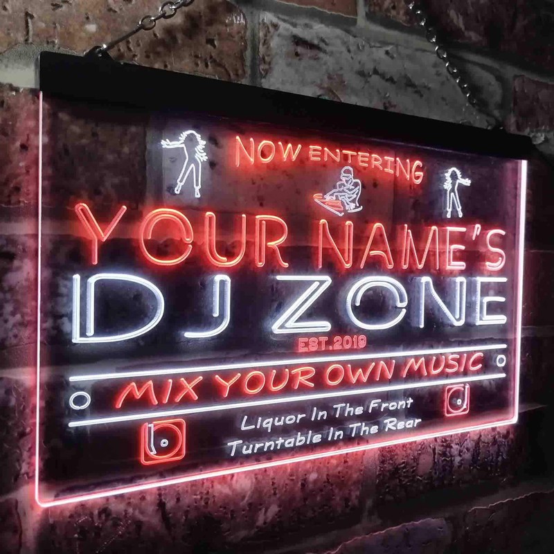 Personalized Your Name Est Year Theme DJ Zone Music Disco Bar Dual Colour LED Bar Light Neon Light Advertising Neon Sign White & Red 300 x 210 mm st6s32-qh1-tm-wr