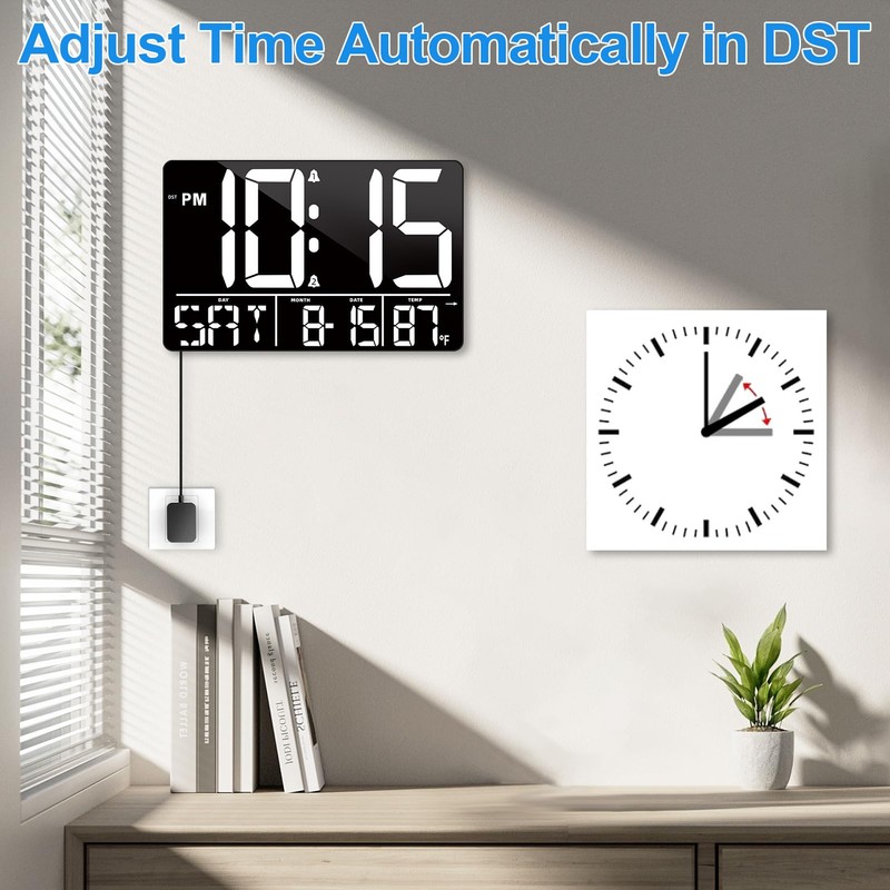 - Auto DST function: This kitchen wall clock automatically adapts to daylight saving time, so you don't have to worry about forgetting or changing the time by mistake, saving you time and energy.