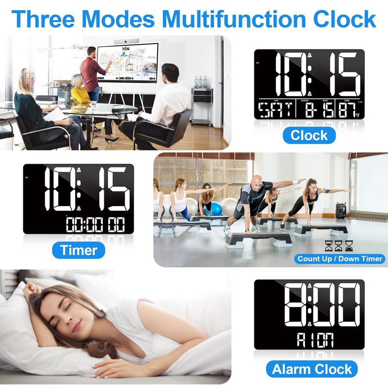 - Large Display: Our digital wall clock features an impressive 13" oversized LED display, allowing you to effortlessly read the time, date, day of the week, and room temperature from various angles even from a distance. It is the perfect choice for seniors and those with poor eyesight.