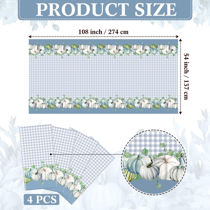 - Package Includes: this pack comes with 4 pieces of fall bulk plastic tablecloths; This means you have ample quantity for one large event, or have tablecloths at hand for multiple smaller gatherings