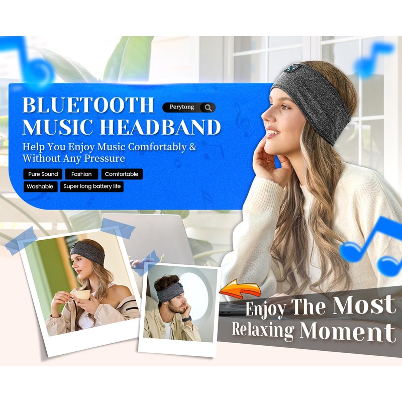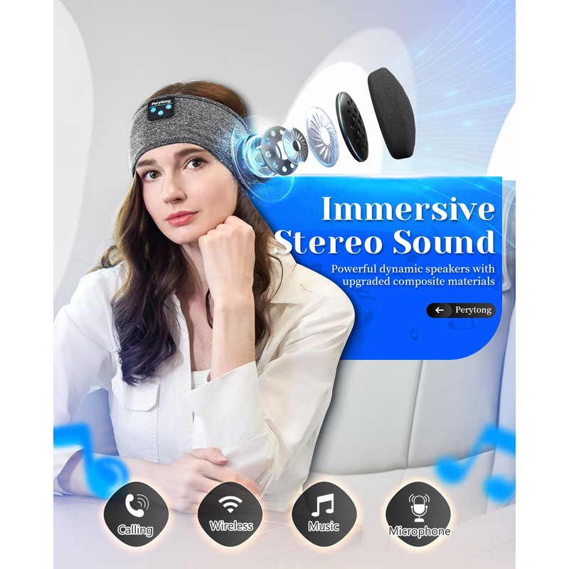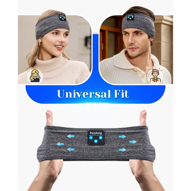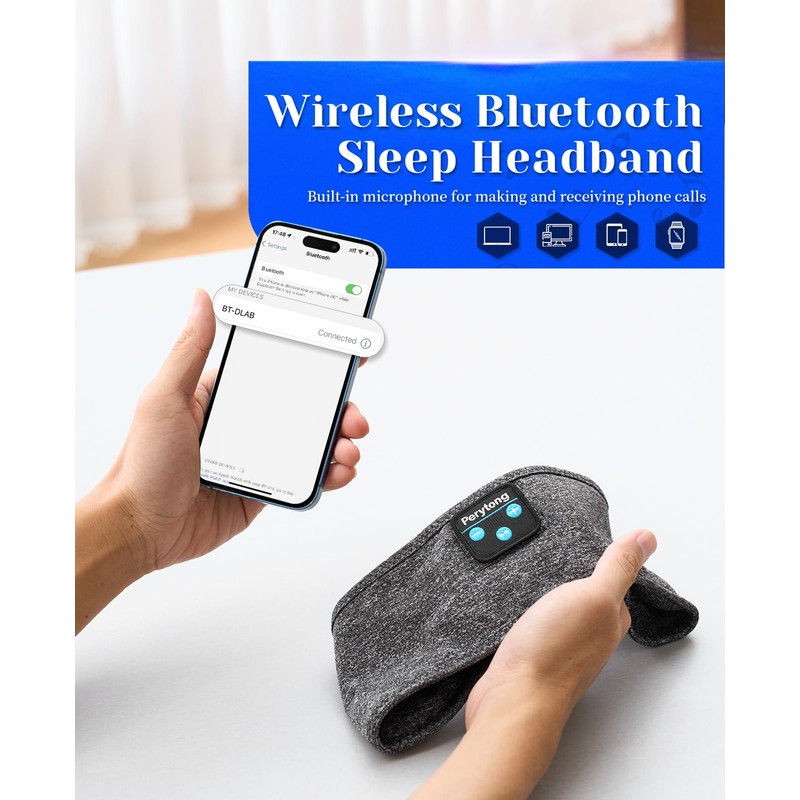 - 【HD Hi Fi Audio Sound & Bluetooth-compatible】 Perytong sleep headphones built in stereo speaker and microphone,provide high quality digital sound.Bluetooth headband headphones for sleeping offer a range of up to 45 feet,sleep headband will connect to any bluetooth phone or portable device.The sleep mask with bluetooth headphones not only gives users attractive & stylish look,but also bring them superior sound quality when sleeping,running,or practicing yoga.