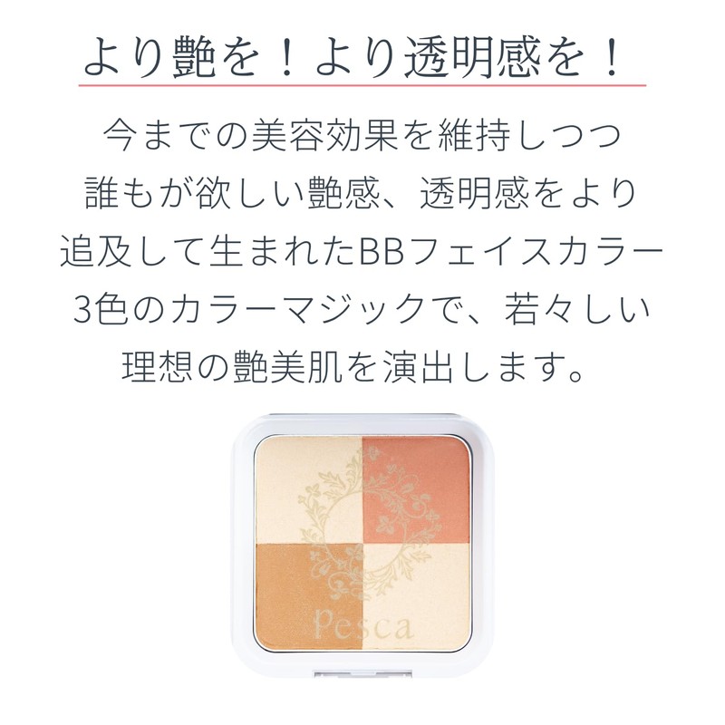 Get the perfect luster and beauty of your skin with the Pesca BB Face Color Set. This innovative makeup item is composed of 3 color magic that creates a sense of transparency and 3D at the same time. The three colors of Jasmine White, Rosy Pink, and Amber blend together for a youthful and impressive finish. The included special face brush allows you to easily create a beautiful gradation and create a sophisticated three-dimensional look. Easy to use, Jasmine White after foundation, Rosie Pink is applied to the entire face and shading with amber to create a beautiful 3D and glossy finish. In addition, the original design beige tote bag is included as a special set. Elegant arabesque pattern with muted color makes it perfect for everyday use. This is a special set exclusively from Amazon.co.jp to create luxurious contents.
