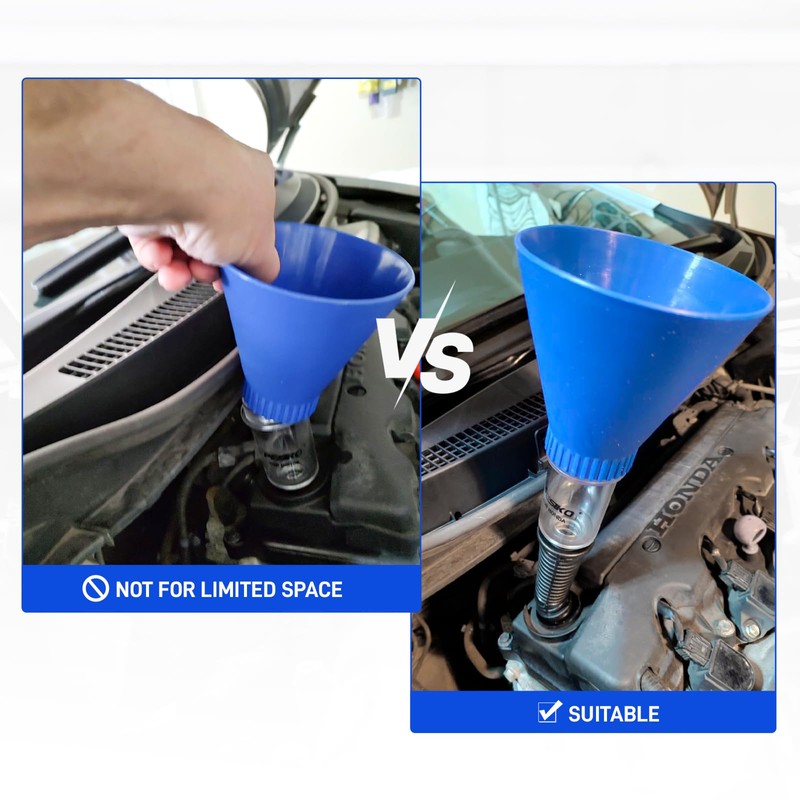 - Wide Application: This oil funnel is compatible with most Honda, Nissan, Suzuki, Hyundai and Kia vehicles. Particularly well-suited for Honda models with compact interiors. Refer to images for list of compatible models