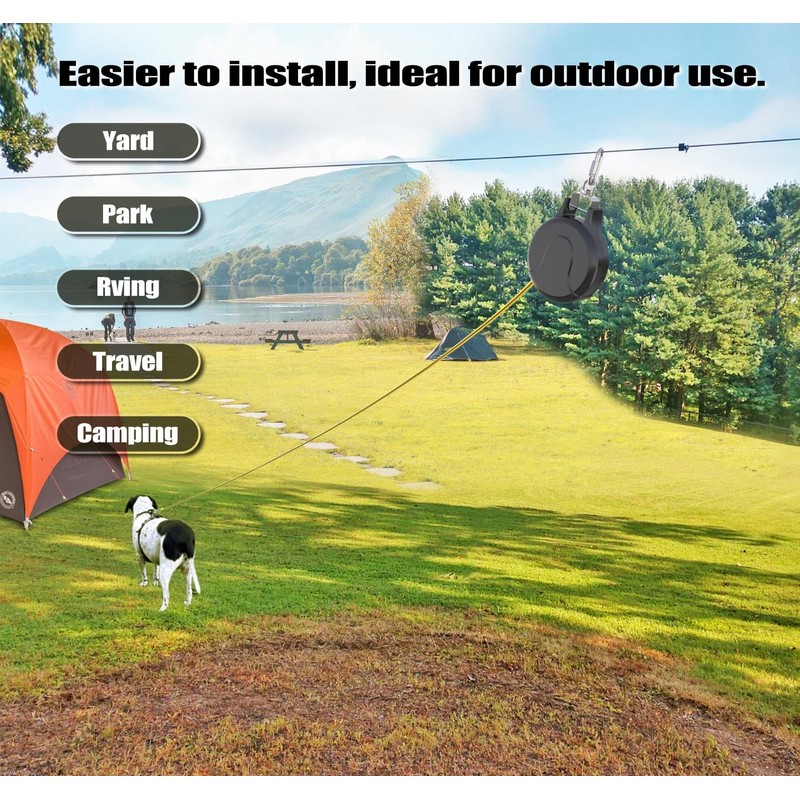 - ❤ 2-IN-1 RETRACTABLE DOG TIE OUT: Our Retractable Dog Tie Out cable is compatible with almost any aerial dog tie out trolley system dog zipline dog run cable or dog tie out stake dog anchor. Perfect for the yard, camping, park, picnic, sporting and convenient for travel.