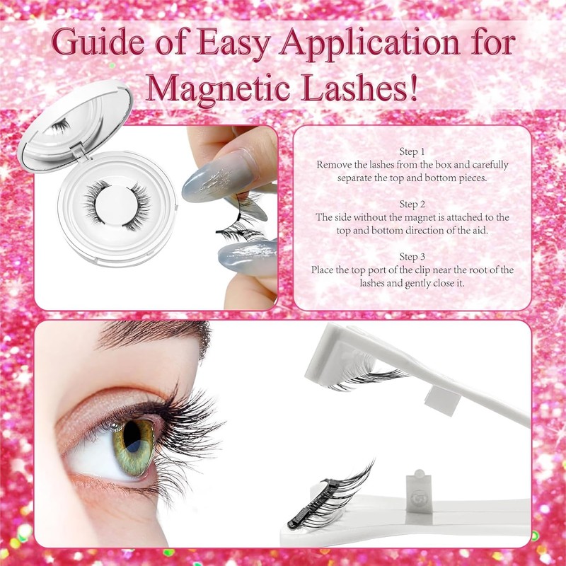 - 【Agradable para aquellos sensibles al pegamento】las pestañas magnéticas tenues no necesitan delineador de ojos ni rímel. Para piel u ojos sensibles, puedes probar las pestañas magnéticas reutilizables con total confianza. El kit de pestañas magnéticas ahorra tiempo y esfuerzo y es muy seguro.