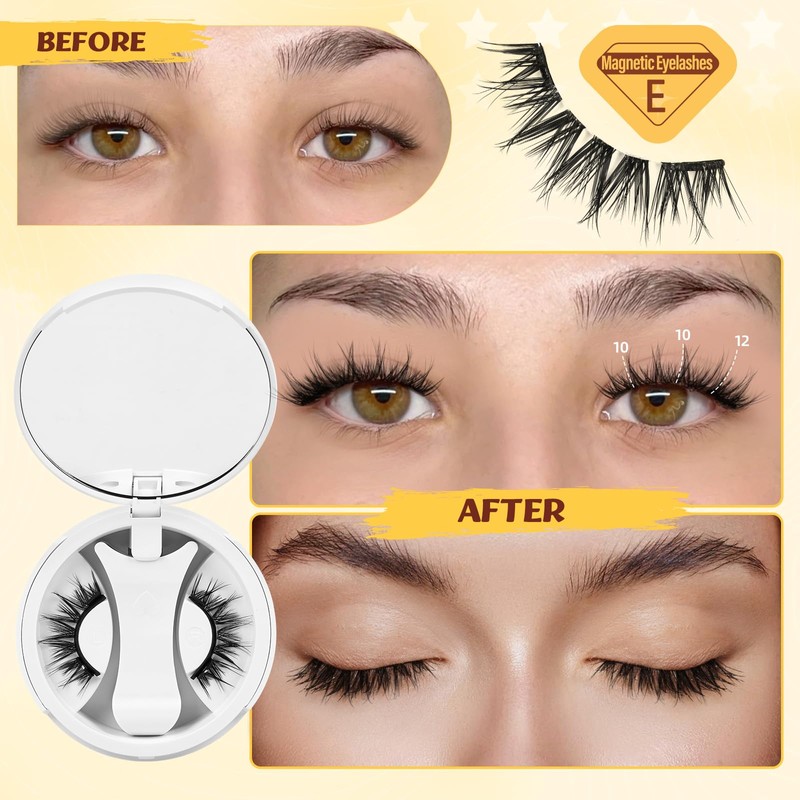 Pestañas magnéticas reutilizables con aplicador, pestañas magnéticas suaves y cómodas, fáciles de usar, se adaptan mejor a la forma del ojo (NZ-E)