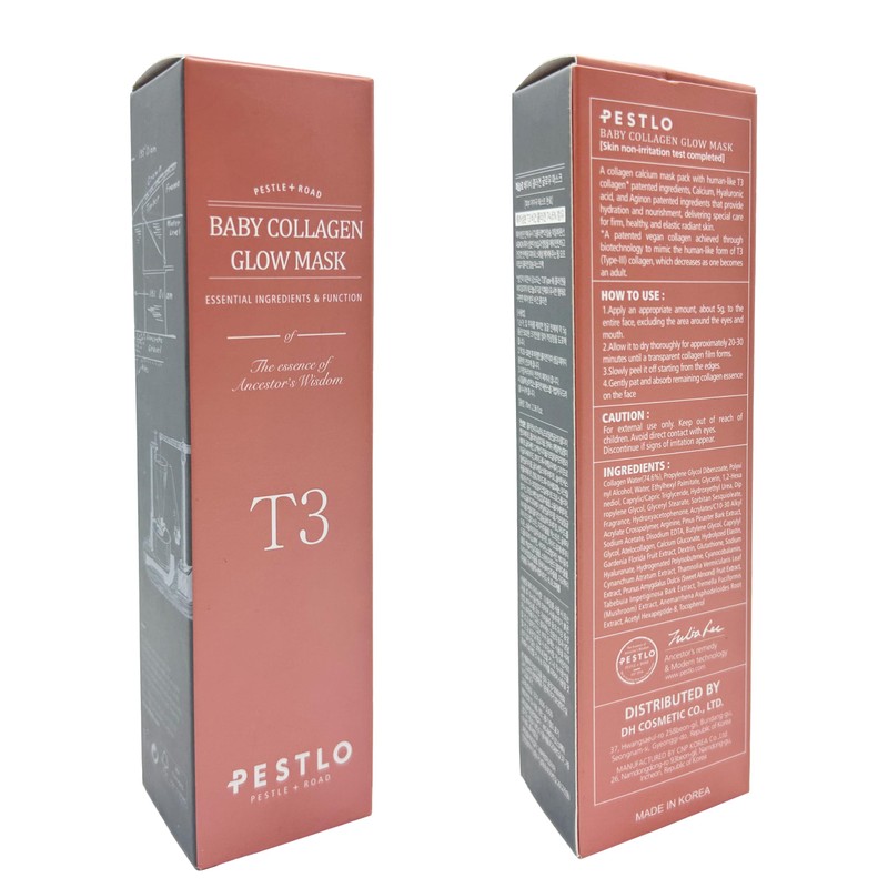 PESTLO Baby Collagen Glow Mask - Korean Peel Off Facial Mask Infused with Reallagen/T3 Vegan Collagen, Aginon, Volufiline for Hydrating, Firming, Glow, Glass Skin | Optional Overnight Use, 2.36 fl.oz