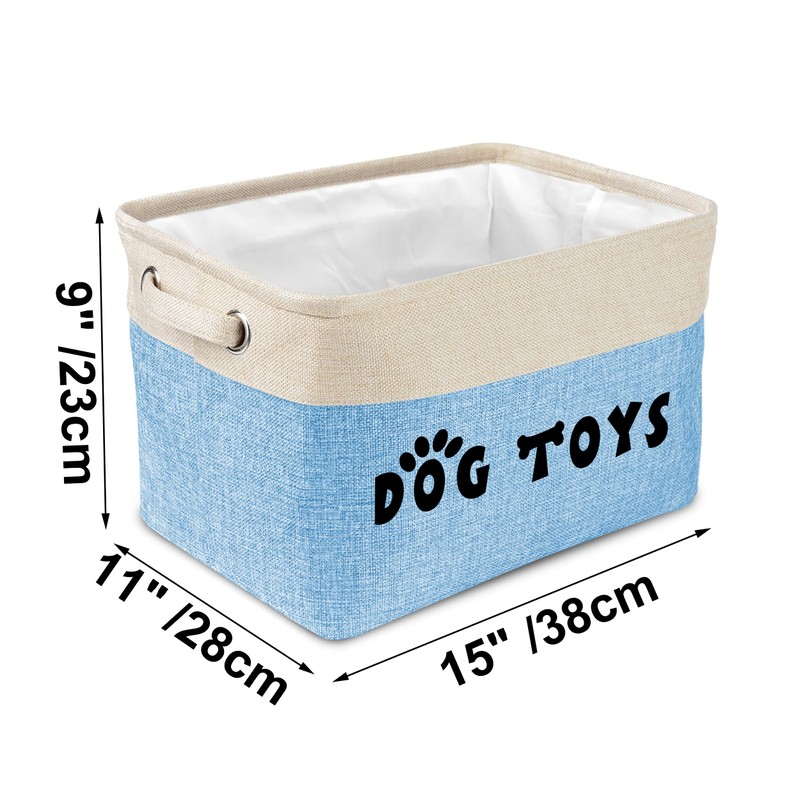 PET ARTIST Dog Toy Basket, Collapsible Dog Toy Bin Box with Comfortable Handles, Large Pet Toy Storage Organizer for Accessories, Toys, Coat & Clothing, Blanket & Leash, Blue, 15"x11"x9"
