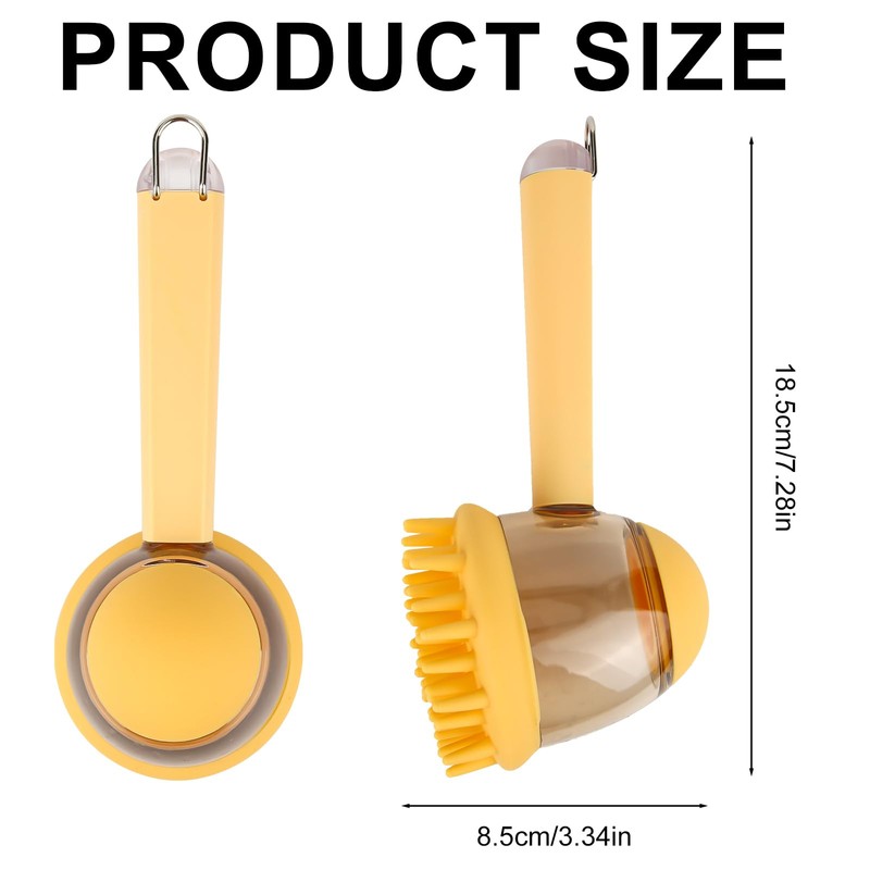 Pet Bath Brush with Soap Dispenser, 3-in-1 Dog & Cat Grooming Brush for Bathing, Massaging & Deshedding Pet Shower Scrubber for Daily Cleaning (Yellow)