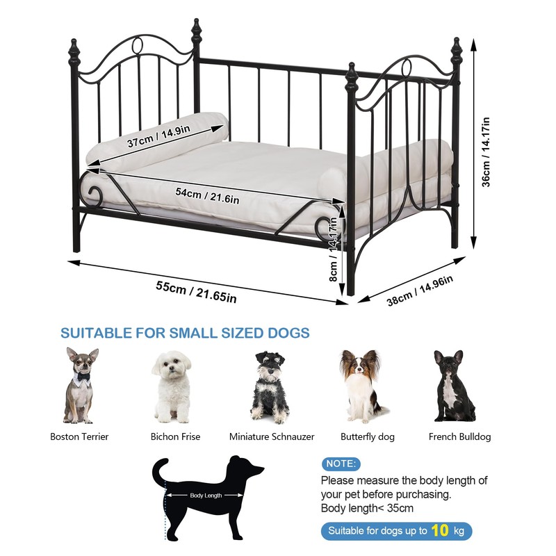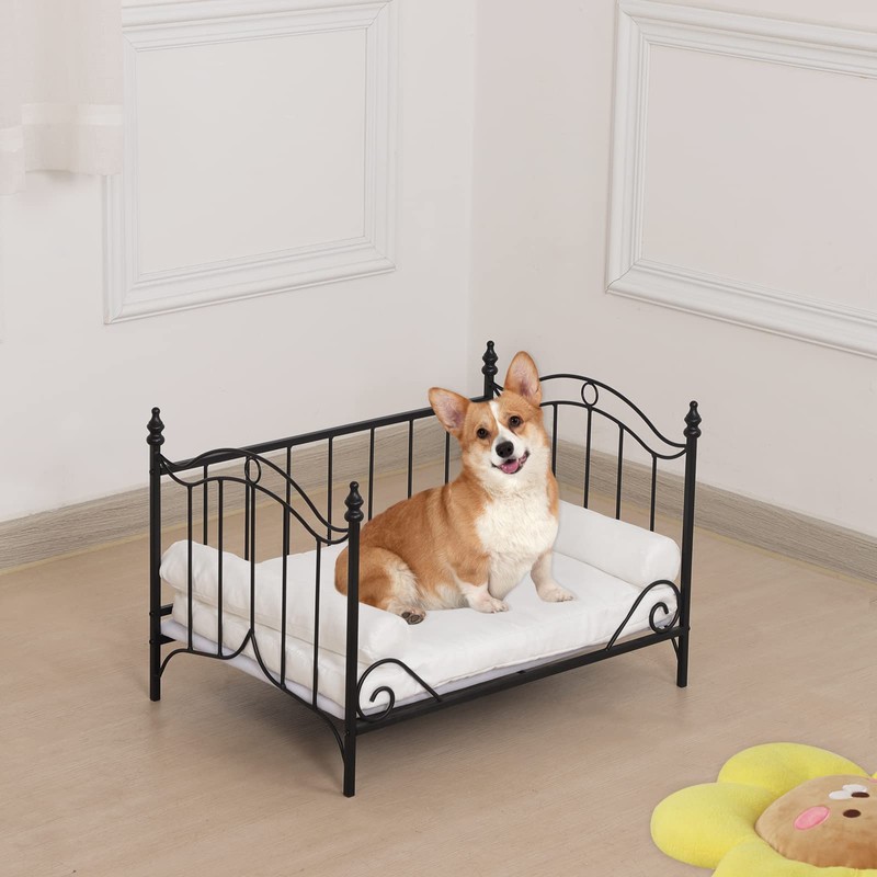 Pet Bed,Cat Sofa Bed, Dog Bed with Metal Frame and Detached White Velvet Cushion with 2 Pillow for Small Dog (Black)