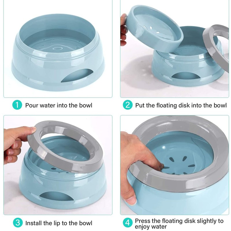• Detachable The floating pet bowl consists of a bowl, a floating plate and a splash-proof side cover, which is easy to remove, clean and install. The large capacity of 750 ml is enough to meet the drinking water needs of pets such as dogs and cats. The floating plate can isolate the water in the bowl from dust in the air, keep the water clean.