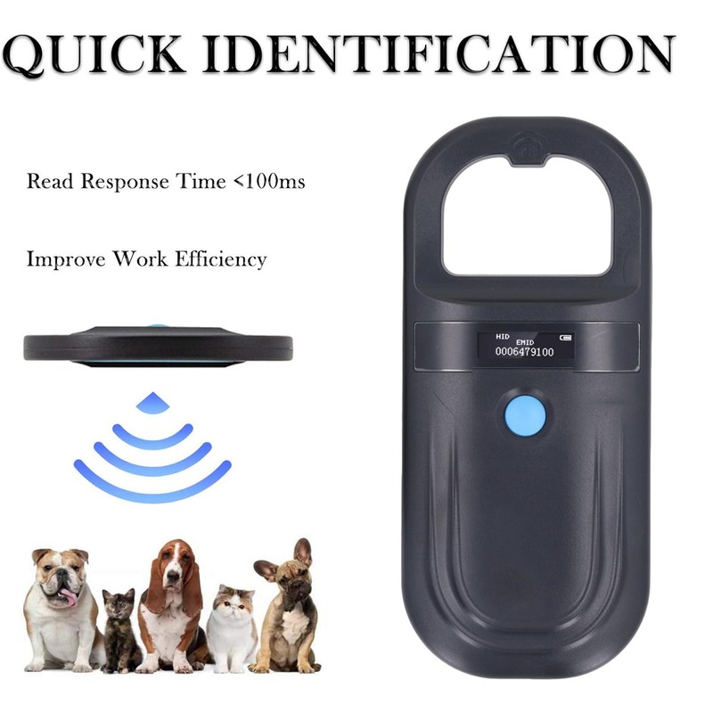 - Working Range: This portable animal ID reader supports ISO11784 85 FDX‑B ID64 microchip, with a working frequency of 134.2KHz, a reading distance of 15cm.