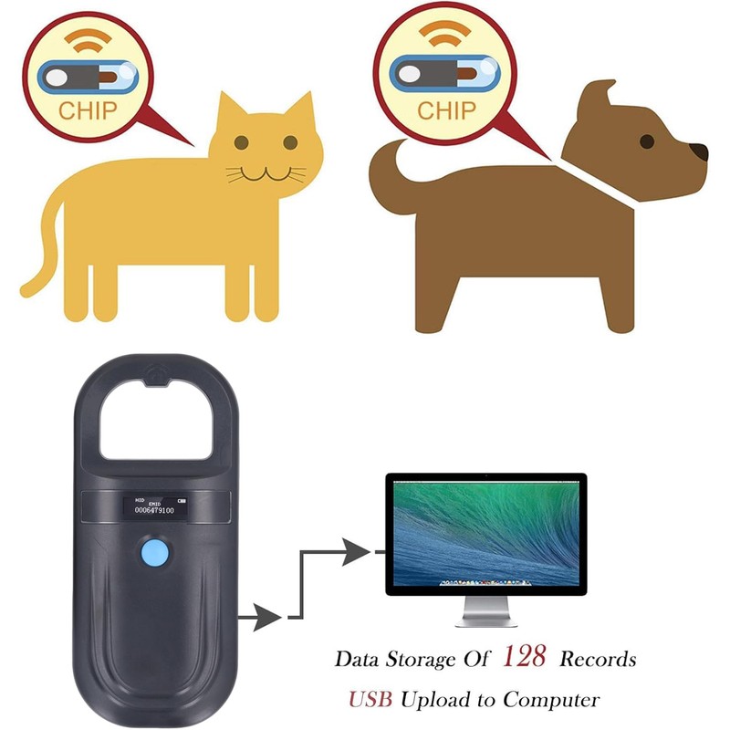 - Battery Powered: This animal chip scanner has built in 3.7V rechargeable lithium battery, with 800mAh large capacity, USB 2.0 interface, can be fully charged in 90 minutes.