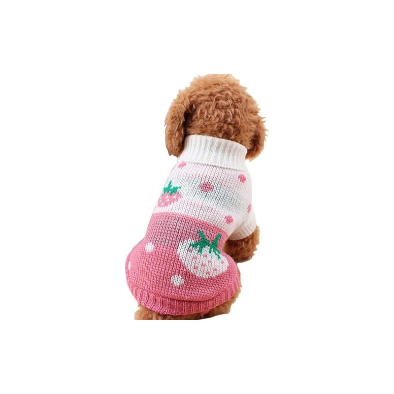 Pet Dog Sweaters Classic Knitwear Turtleneck Winter Warm Puppy Clothing Cute Strawberry and Heart Doggie Sweater (Pink, X-Large)