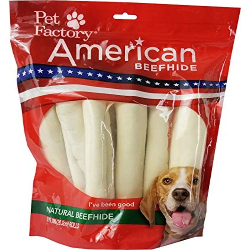 Pet Factory American Beef Hide Rolls Chews For Dogs (8 Pack), Medium/8-9"