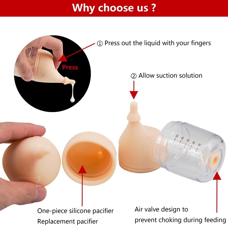 - Soft silicone pacifier: Soft silicone pacifier, even if the newborn kitten and dog without teeth can suck and drink smoothly, and will not choke when drinking milk