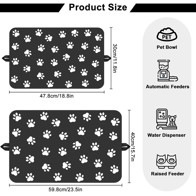 - PET SUPPLIES & APPLICABLE: The dog bowl mat waterproof can be used with pet food and water bowls, or with pet automatic water dispensers. This cat feeding mat can also be placed at the doorway into the house to receive dust and dirty water from the bottom of your furry friend's paws.