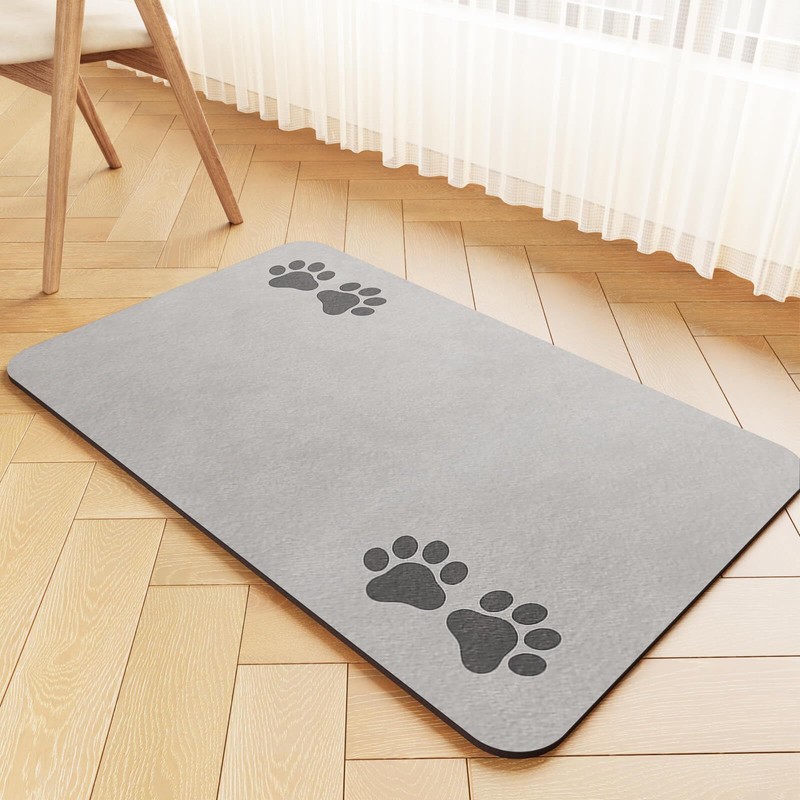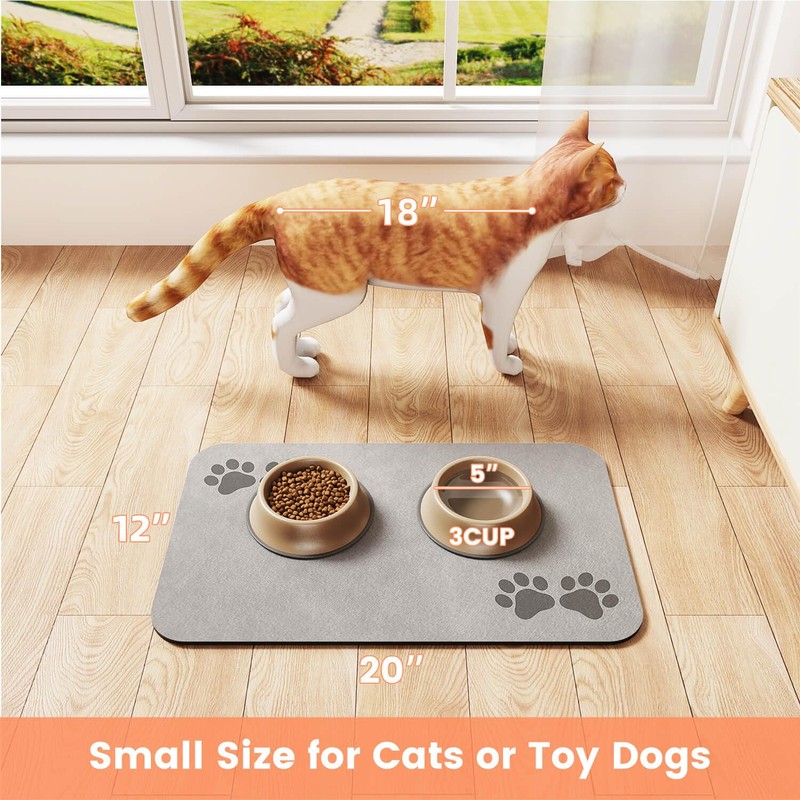 Pet Feeding Mat-Absorbent Pet Placemat for Food and Water Bowl, Dog Food Mat with Waterproof Rubber Backing, No Stains Quick Dry Water Dispenser Mat for Dog and Cat, Light Gray-16"x24"
